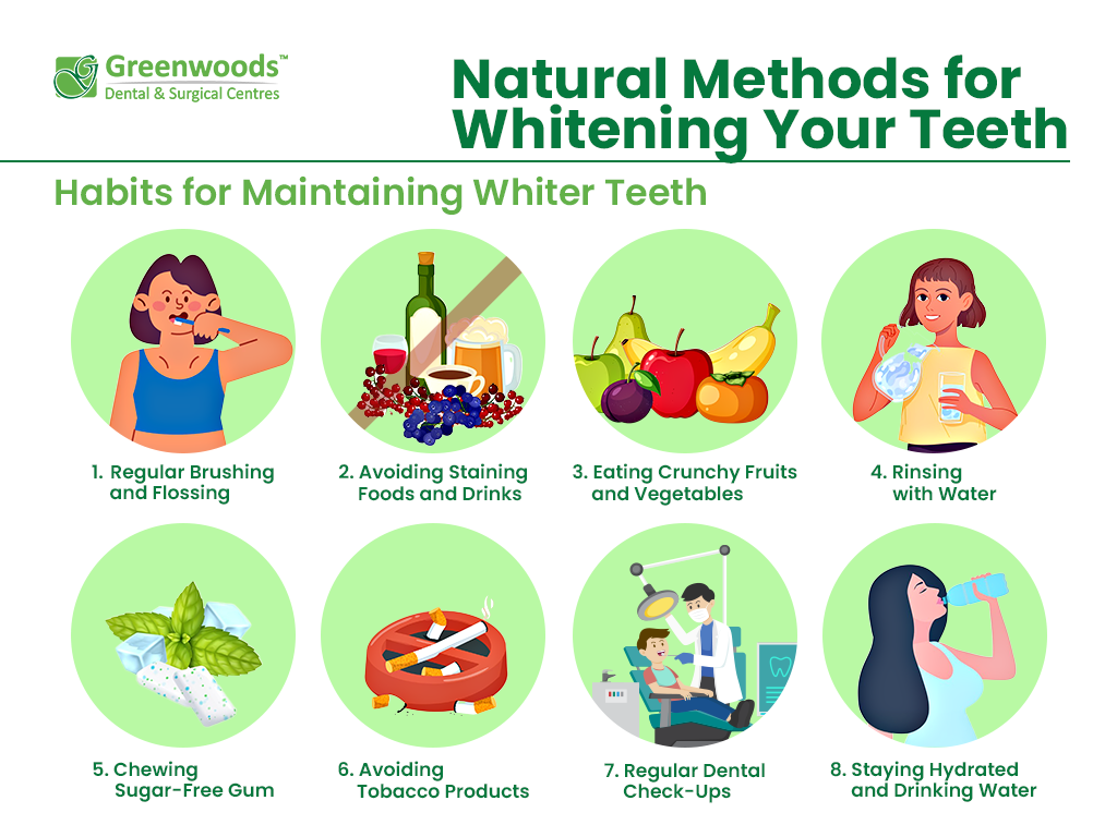 - Avoiding Staining Foods and Drinks. Limit consumption of foods and beverages that can stain teeth, such as coffee, wine, and berries.